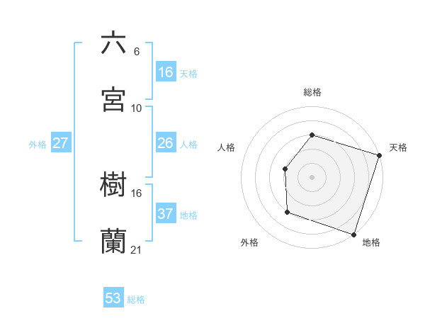 六宮 樹蘭さんの総格は53画の3点!