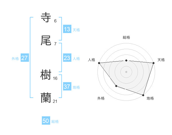 寺尾 樹蘭さんの総格は50画の2点!