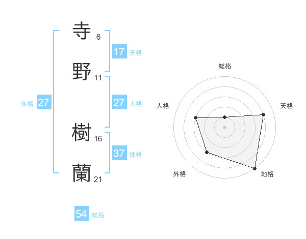 寺野 樹蘭さんを姓名の画数から五運を鑑定