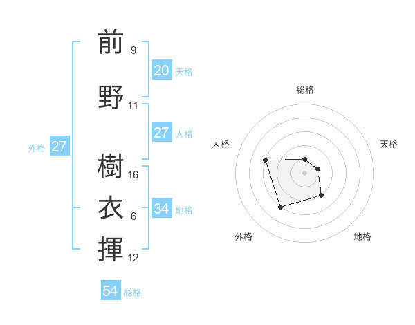 前野 樹衣揮さんを姓名の画数から五運を鑑定