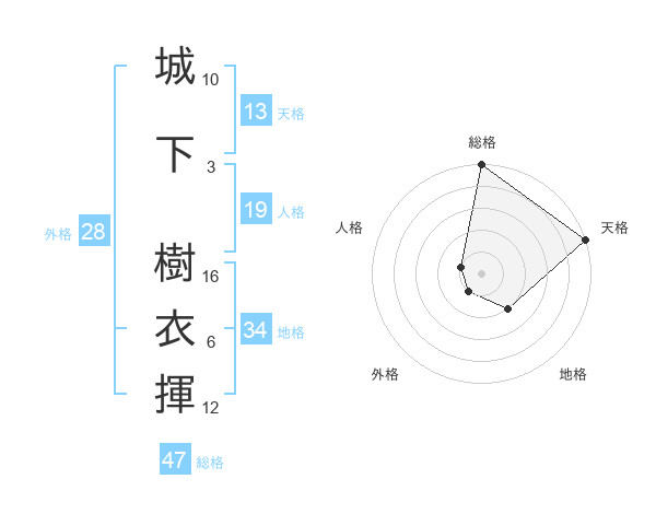 城下 樹衣揮さんを姓名の画数から五運を鑑定