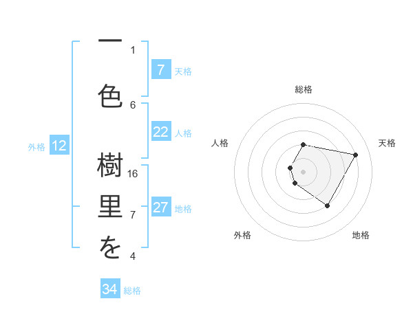 一色 樹里をさんを姓名の画数から五運を鑑定