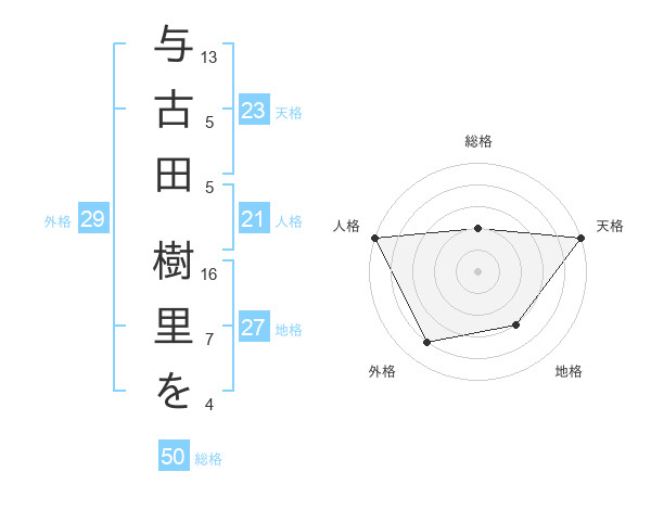 与古田 樹里をさんを姓名の画数から五運を鑑定