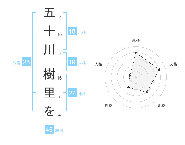五十川 樹里をさんを姓名の画数から五運を鑑定