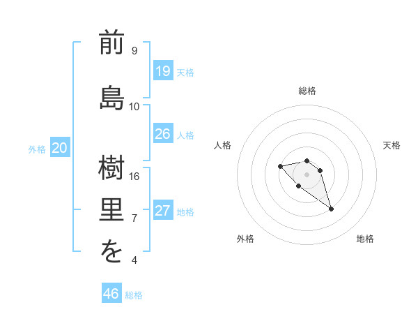 前島 樹里をさんを姓名の画数から五運を鑑定