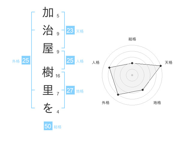 加治屋 樹里をさんを姓名の画数から五運を鑑定