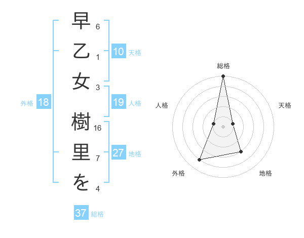 早乙女 樹里をさんを姓名の画数から五運を鑑定