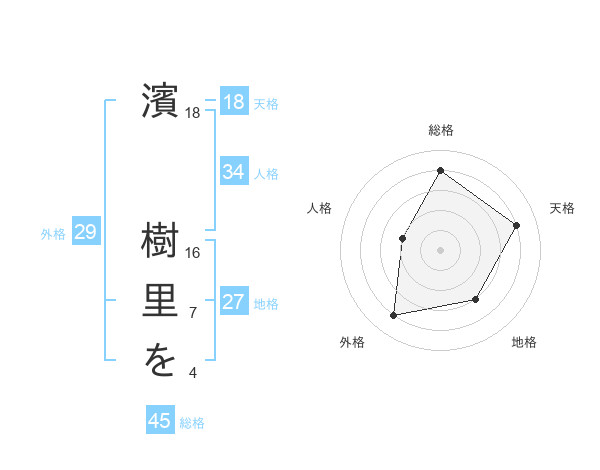 濱 樹里をさんを姓名の画数から五運を鑑定