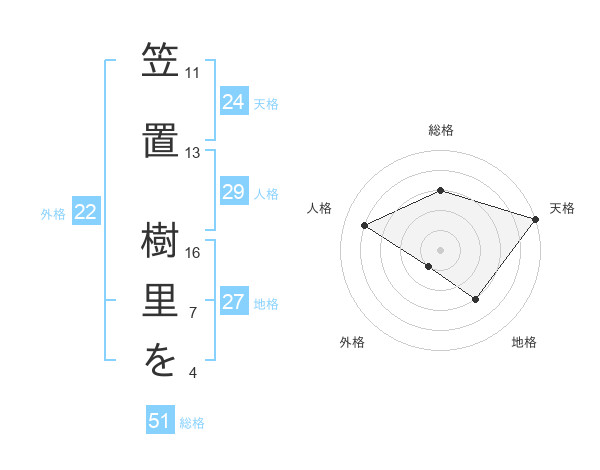 笠置 樹里をさんを姓名の画数から五運を鑑定