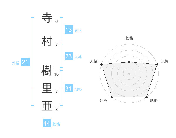 寺村 樹里亜さんの天格は13画の5点!