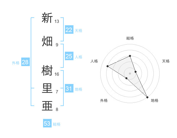 新畑 樹里亜さんを姓名の画数から五運を鑑定