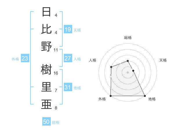 日比野 樹里亜さんを姓名の画数から五運を鑑定