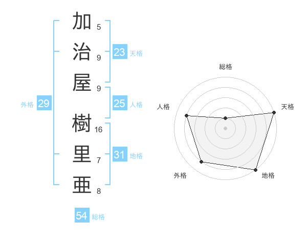 加治屋 樹里亜さんを姓名の画数から五運を鑑定