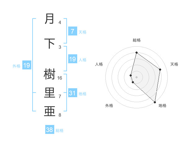 月下 樹里亜さんを姓名の画数から五運を鑑定