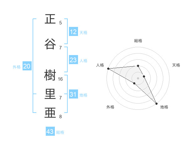 正谷 樹里亜さんを姓名の画数から五運を鑑定