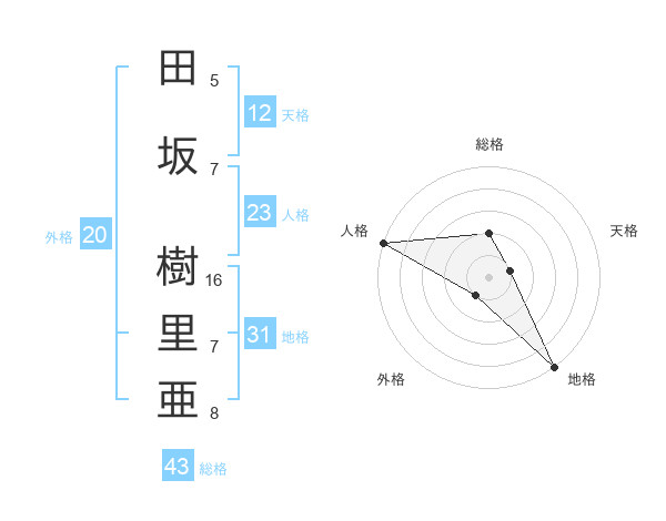 田坂 樹里亜さんを姓名の画数から五運を鑑定