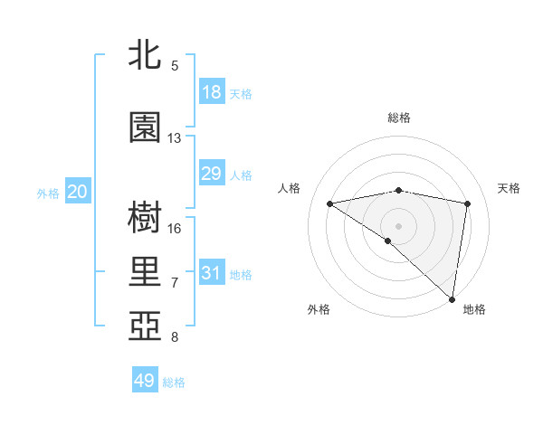 北園 樹里亞さんの地格は31画の5点!
