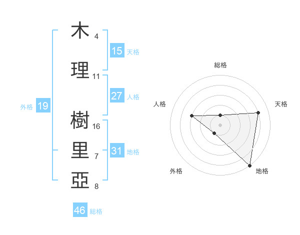 木理 樹里亞さんを姓名の画数から五運を鑑定
