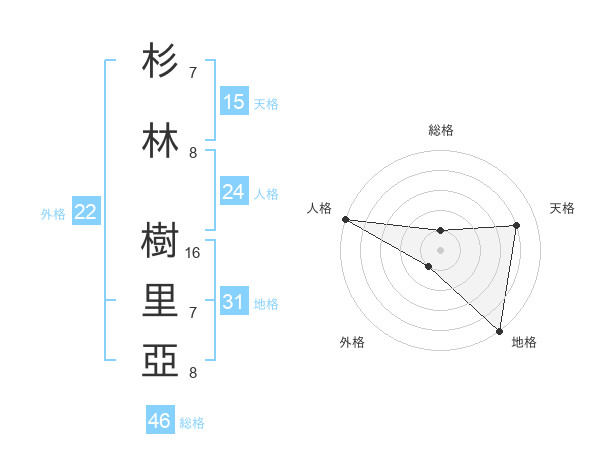 杉林 樹里亞さんを姓名の画数から五運を鑑定