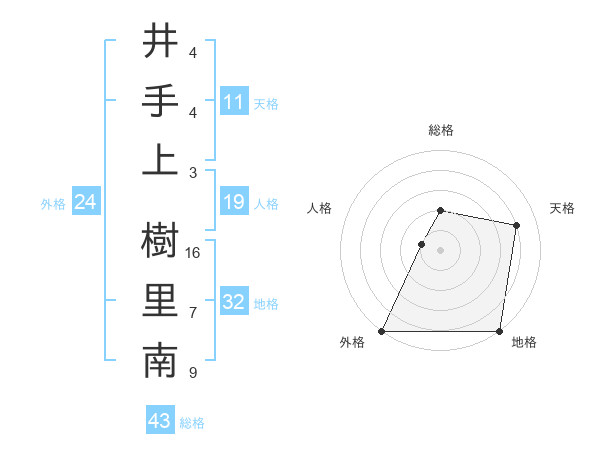井手上 樹里南さんを姓名の画数から五運を鑑定