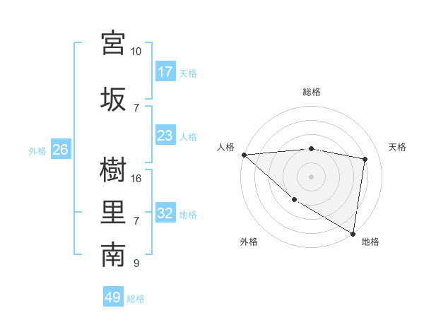 宮坂 樹里南さんを姓名の画数から五運を鑑定