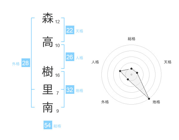 森高 樹里南さんを姓名の画数から五運を鑑定