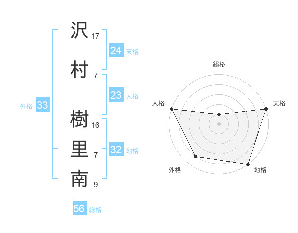 沢村 樹里南さんを姓名の画数から五運を鑑定