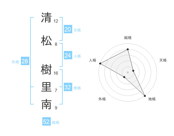 清松 樹里南さんを姓名の画数から五運を鑑定