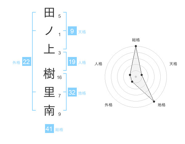 田ノ上 樹里南さんを姓名の画数から五運を鑑定