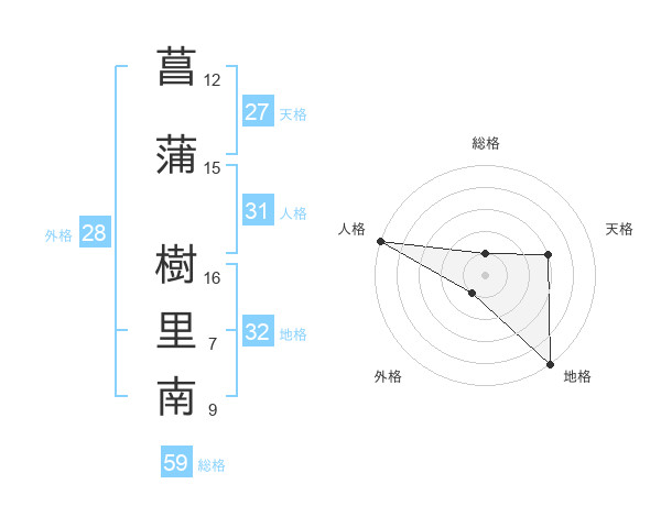 菖蒲 樹里南さんを姓名の画数から五運を鑑定