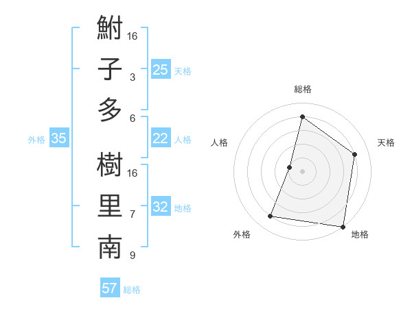 鮒子多 樹里南さんを姓名の画数から五運を鑑定