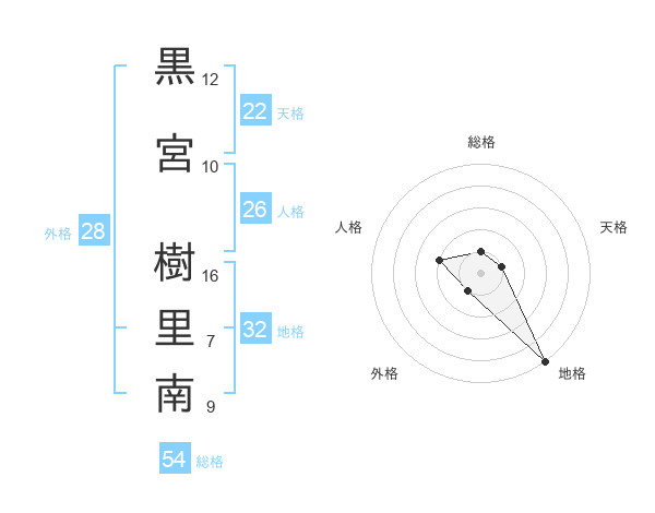 黒宮 樹里南さんの天格は22画の1点!