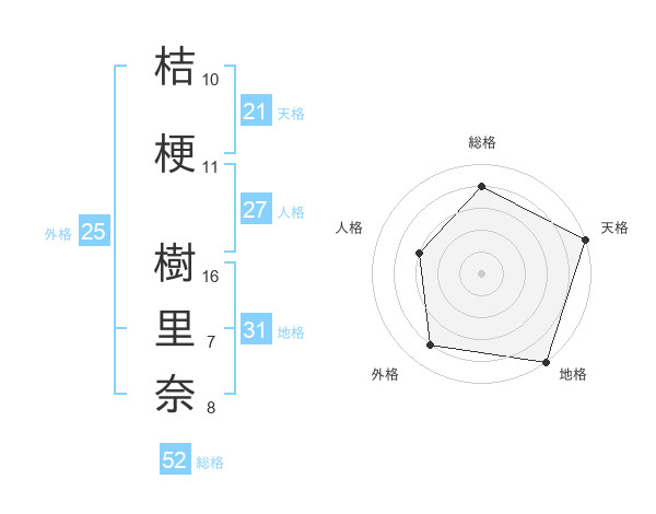 桔梗 樹里奈さんを姓名の画数から五運を鑑定