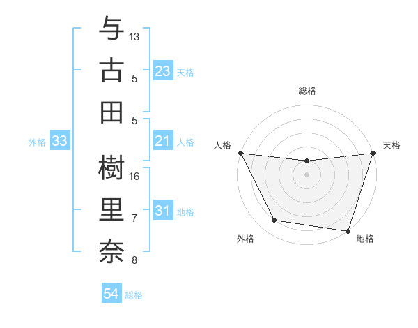 与古田 樹里奈さんの天格は23画の5点!