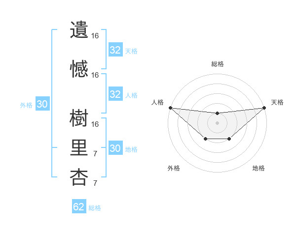 遺憾 樹里杏さんの地格は30画の2点!