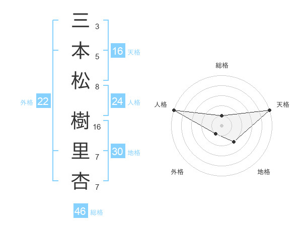 三本松 樹里杏さんを姓名の画数から五運を鑑定