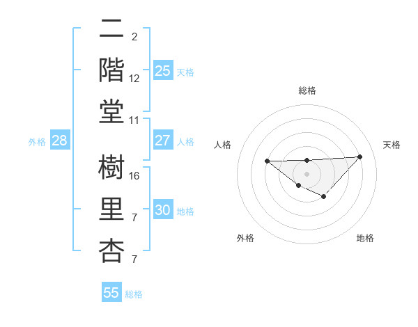 二階堂 樹里杏さんの天格は25画の4点!
