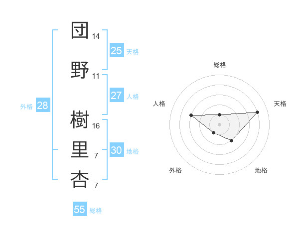 団野 樹里杏さんの天格は25画の4点!