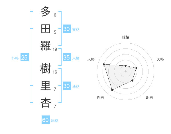 多田羅 樹里杏さんを姓名の画数から五運を鑑定