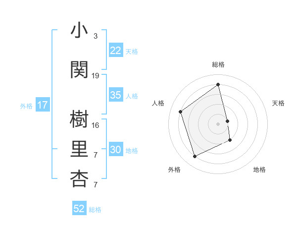 小関 樹里杏さんを姓名の画数から五運を鑑定