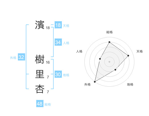 濱 樹里杏さんの総格は48画の4点