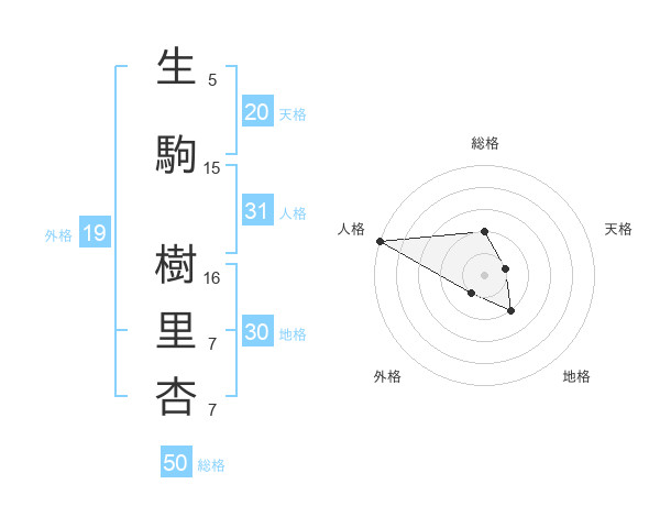 生駒 樹里杏さんを姓名の画数から五運を鑑定