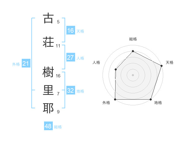 古荘 樹里耶さんを姓名の画数から五運を鑑定