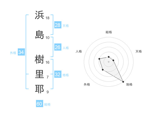 浜島 樹里耶さんを姓名の画数から五運を鑑定