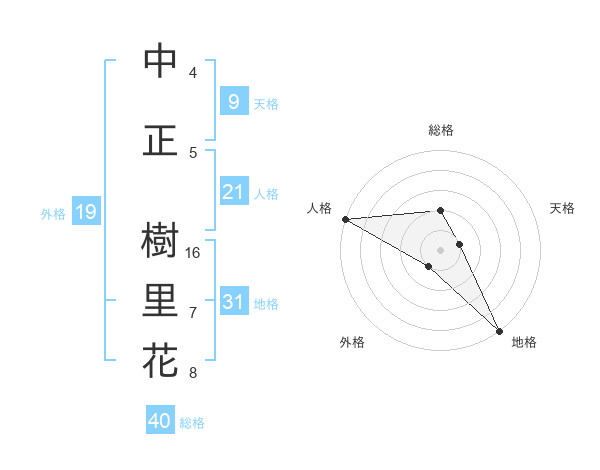 中正 樹里花さんを姓名の画数から五運を鑑定