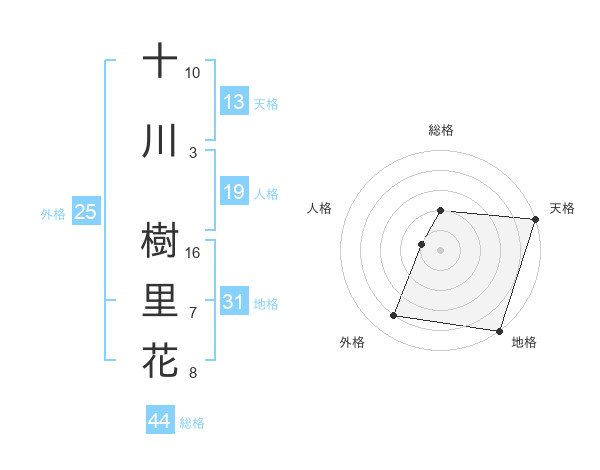 十川 樹里花さんを姓名の画数から五運を鑑定