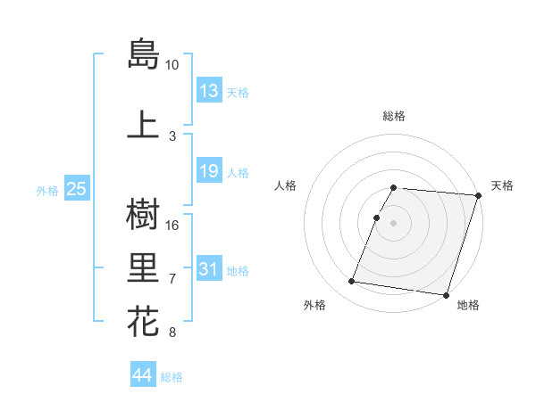 島上 樹里花さんの天格は13画の5点!