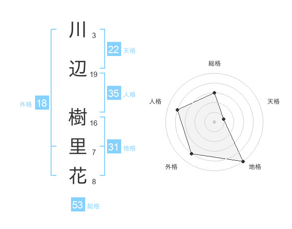 川辺 樹里花さんの総格は53画の3点!