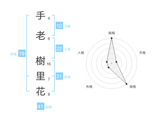 手老 樹里花さんを姓名の画数から五運を鑑定