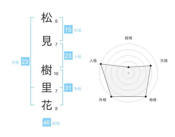 松見 樹里花さんの天格は15画の4点!